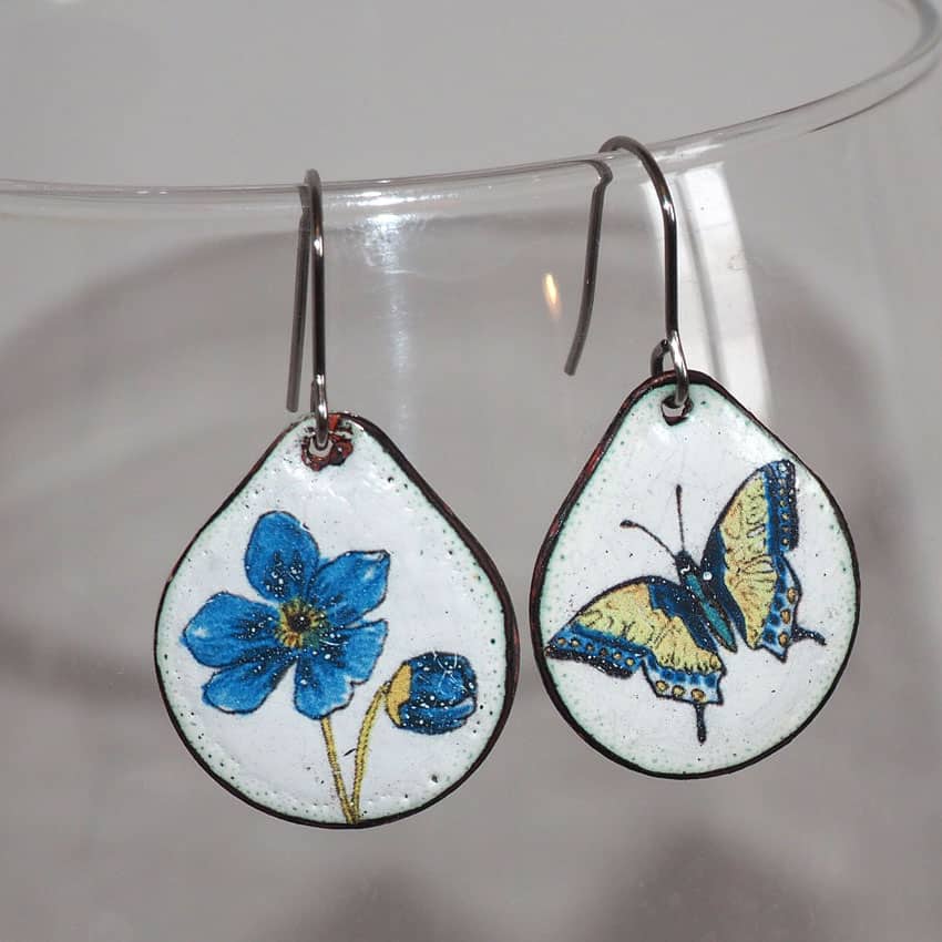 L’émail sur métal est le résultat de la fusion du cristal ou du verre sur du métal, à haute température (800-850°), dans un four d’émailleur.